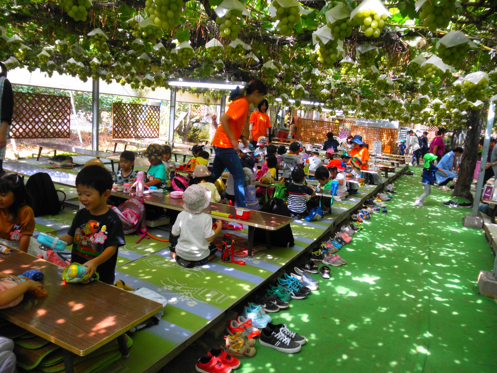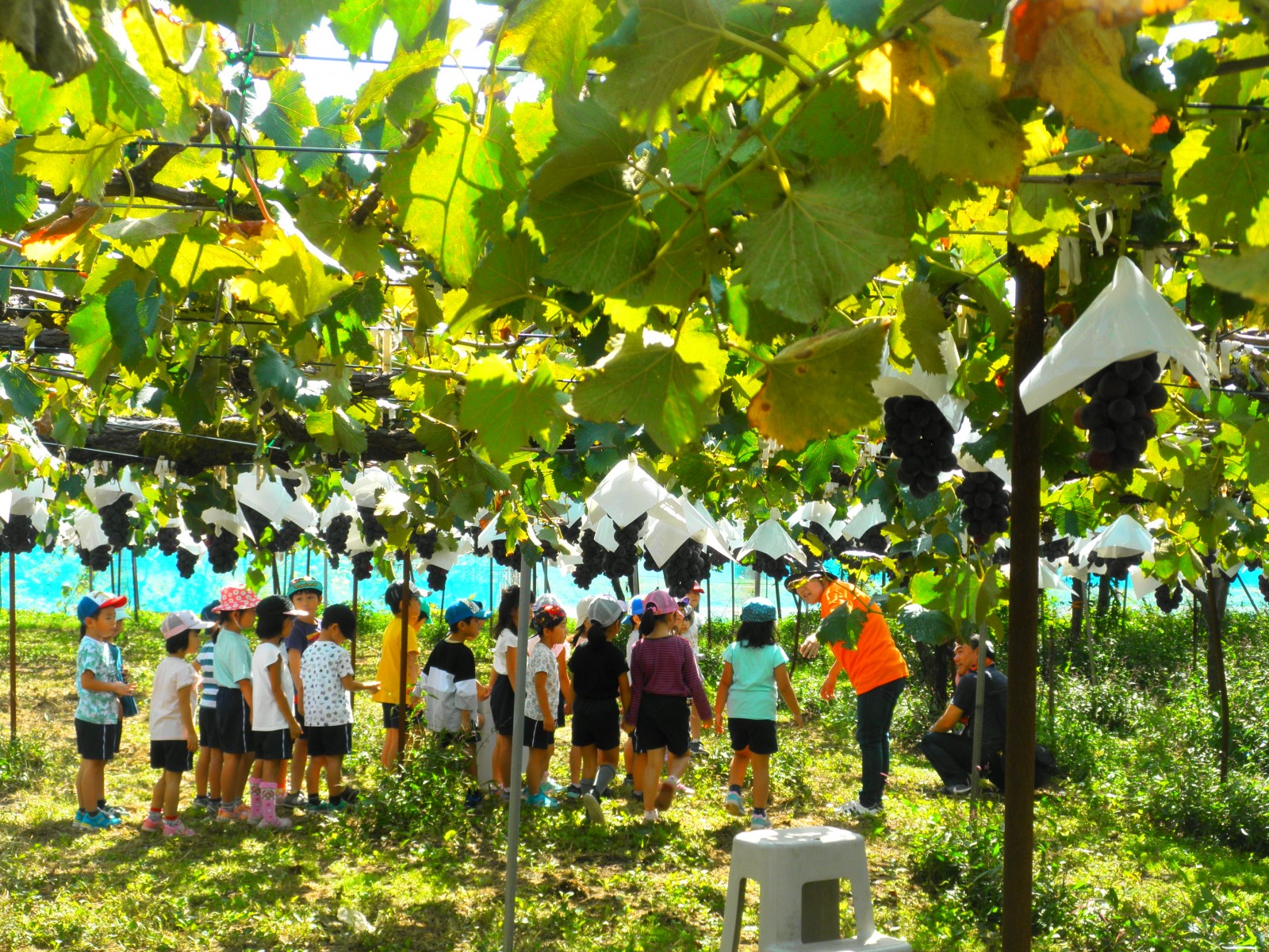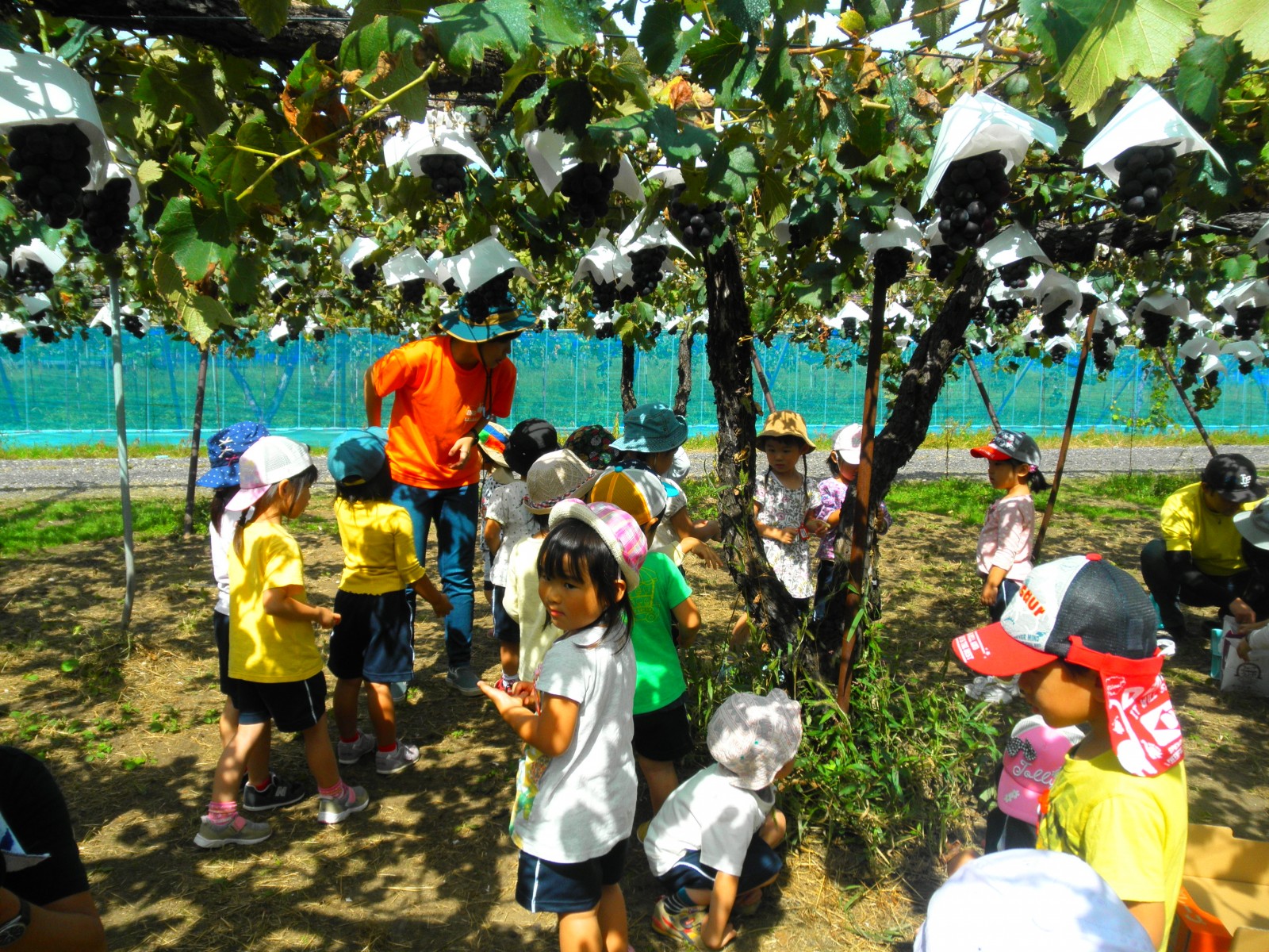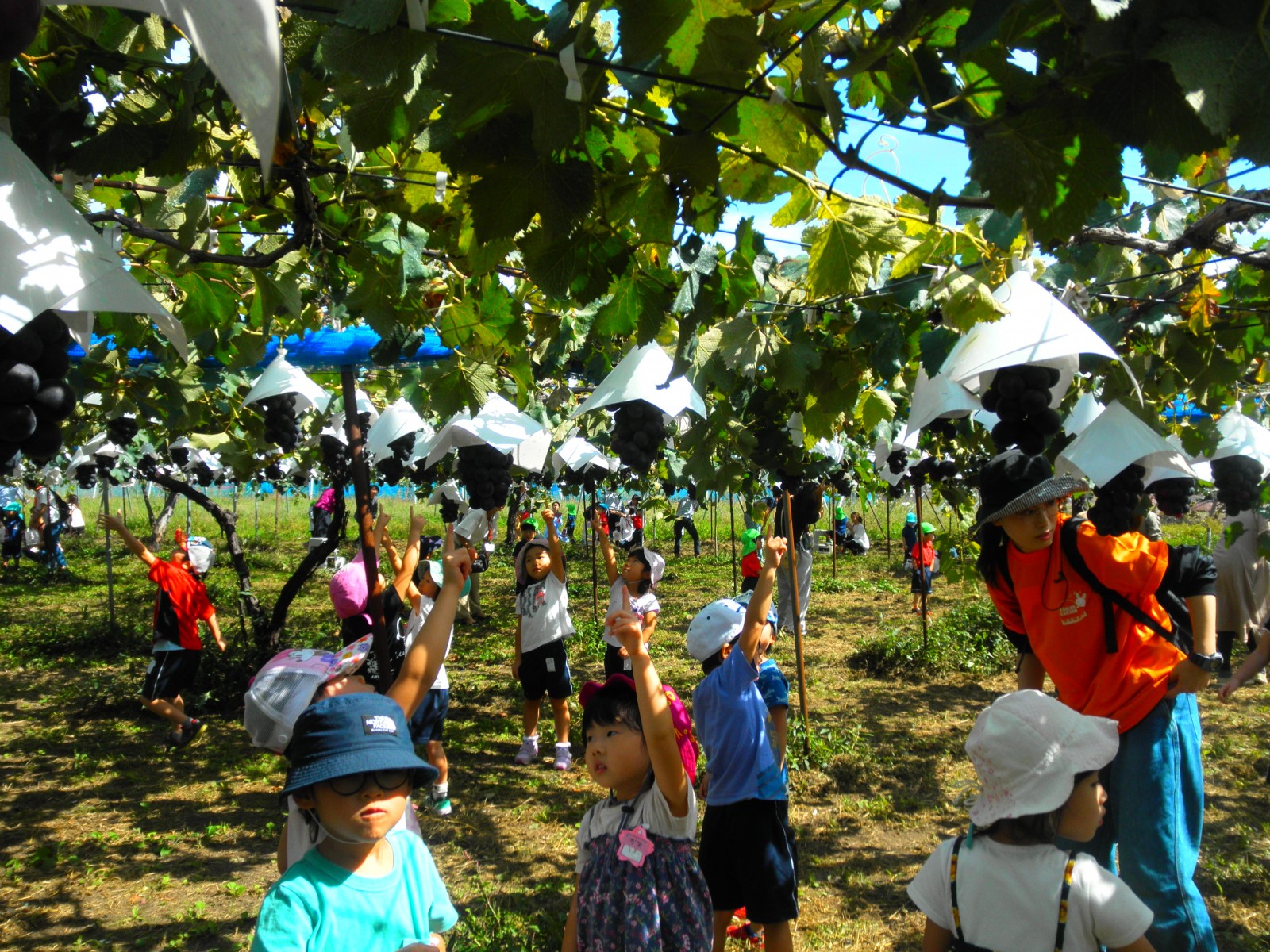 待ちに待ったぶどう狩りにいきました。おやつも食べて、お天気がよく外でたくさん遊べました。