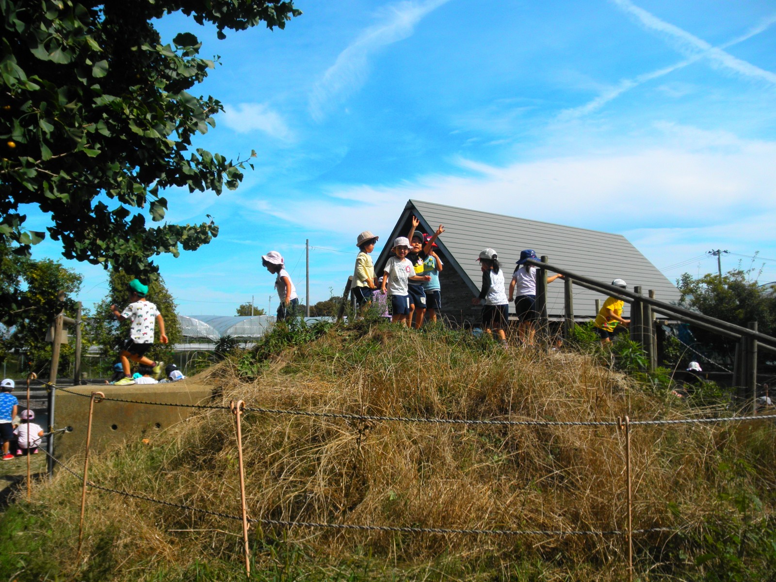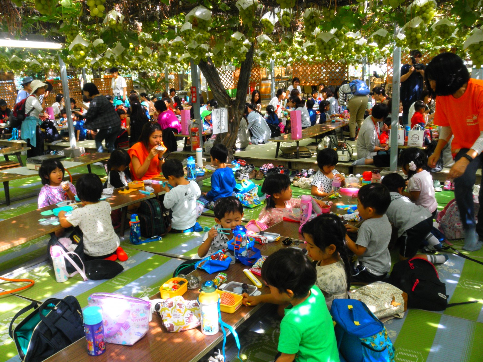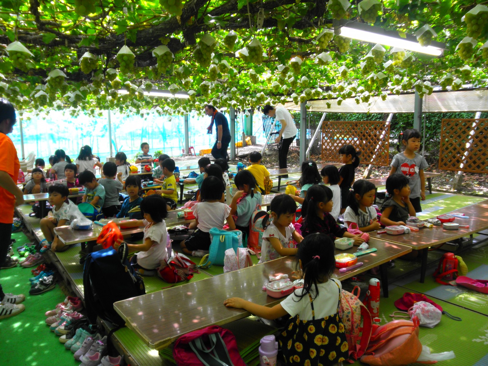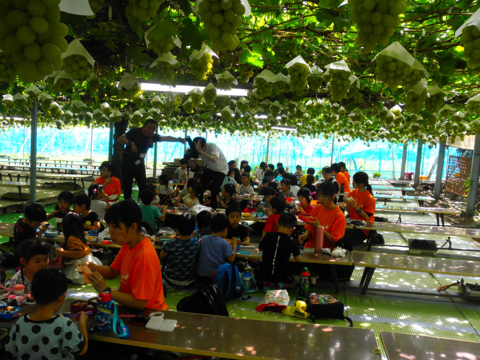 待ちに待ったぶどう狩りにいきました。おやつも食べて、お天気がよく外でたくさん遊べました。