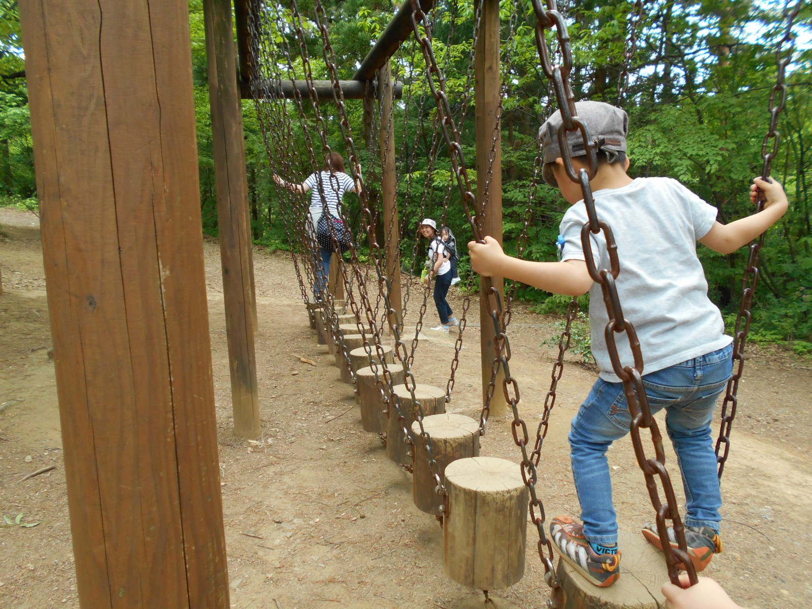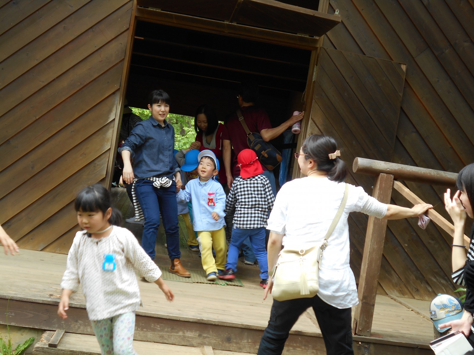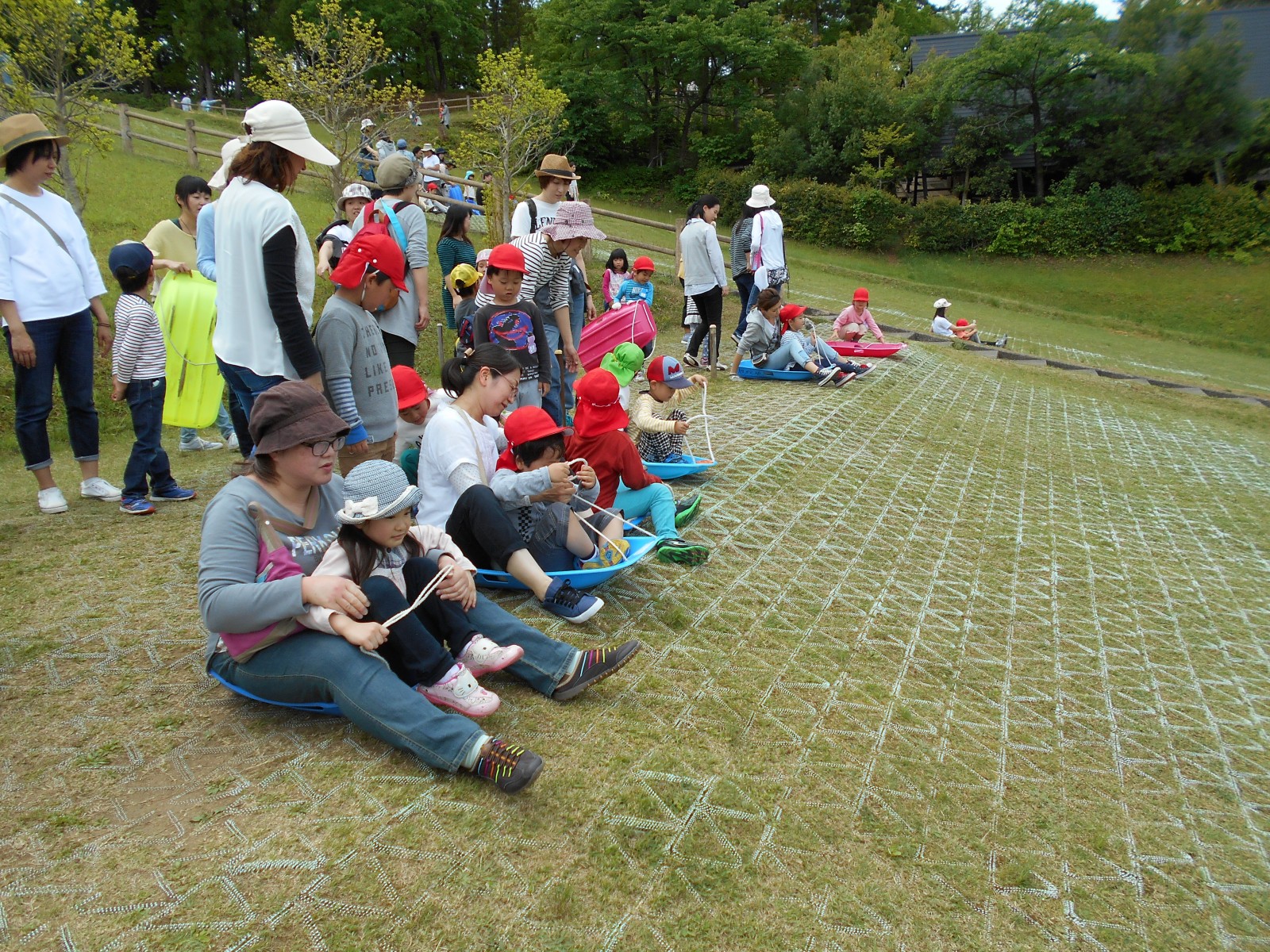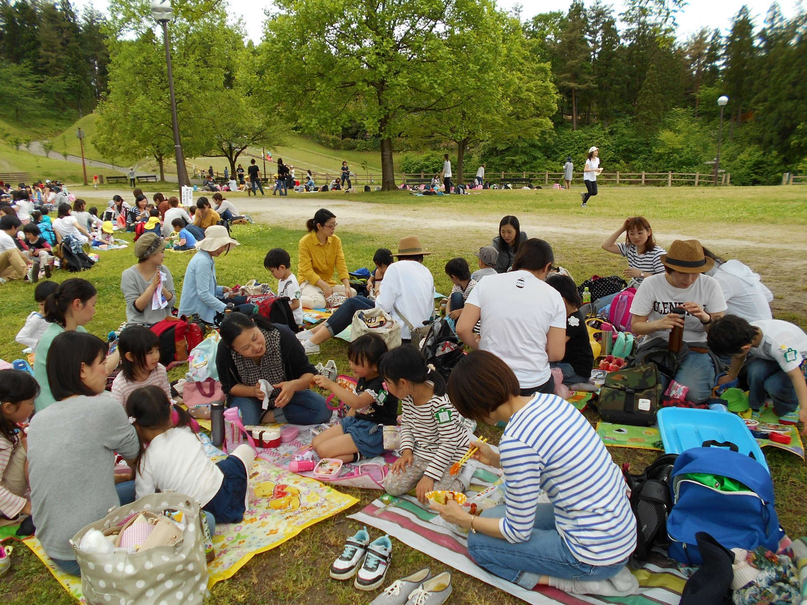 5月10日には年長さんの親子遠足で悠々ランドにいって人工芝のそりすべりや、斜めに建っているビックリハウスでみんなが3半規管の狂いに抵抗しながら、よろよろと歩いているところも写真に撮りました。撮影者はその建物に近づくだけで気持ち悪くなるので別な人にとってもらいました。天気予報では雨だったので、心配しながら行ってきましたが、晴れ女・晴れ男の力で素晴らしい天気で気持ち良かったです。