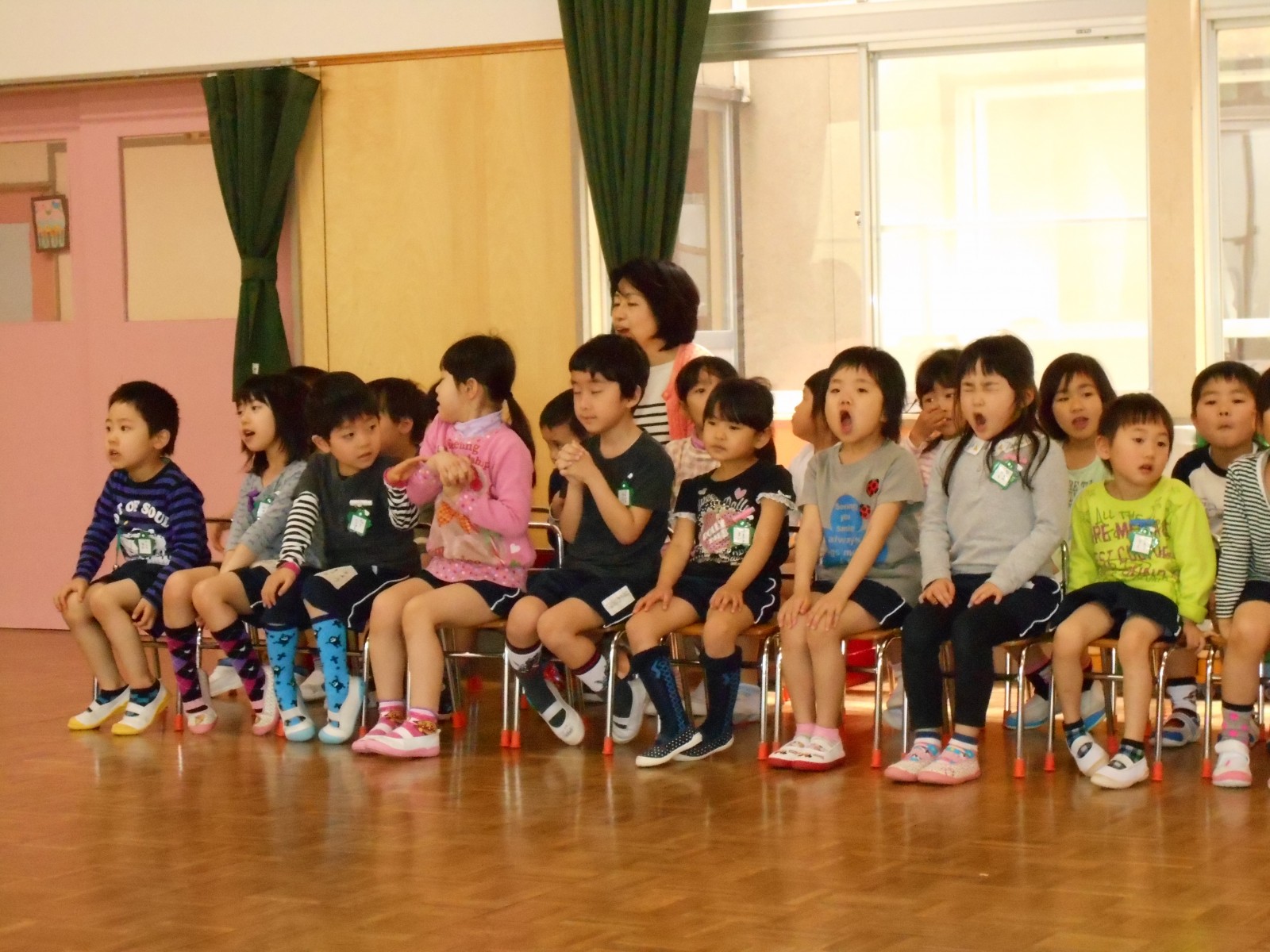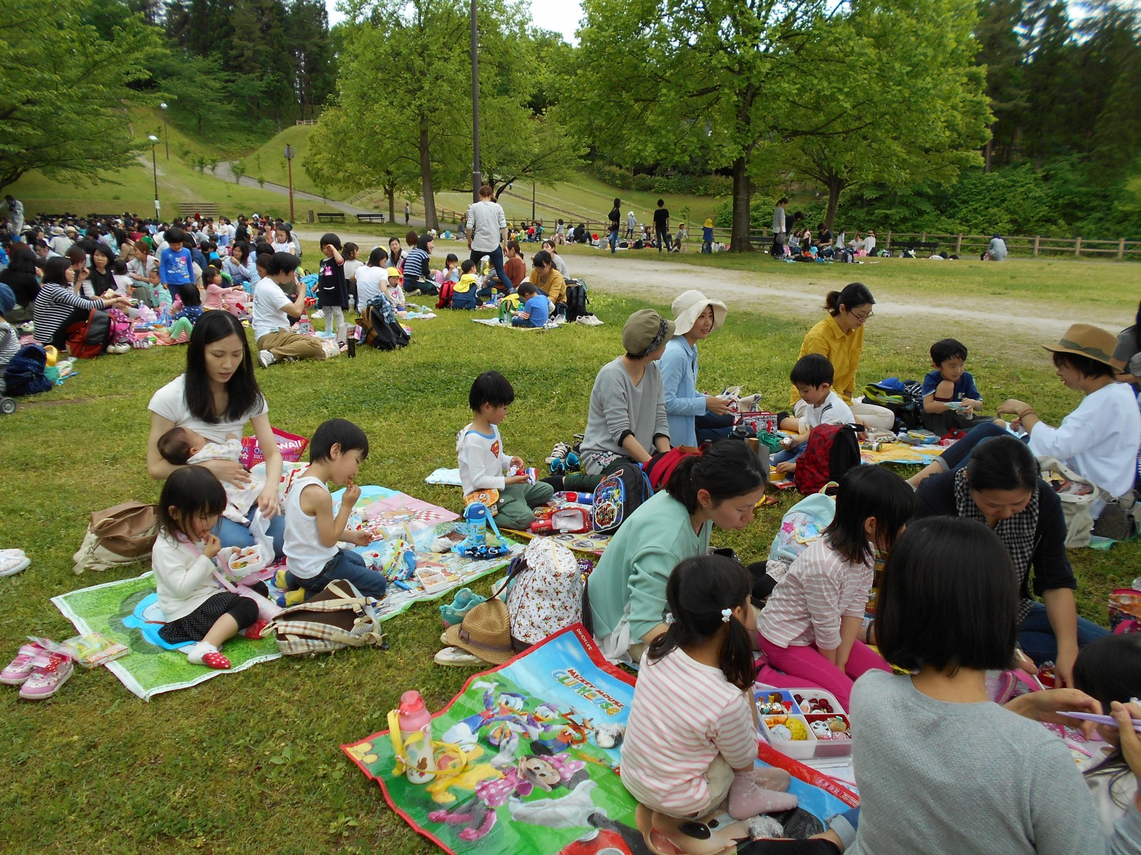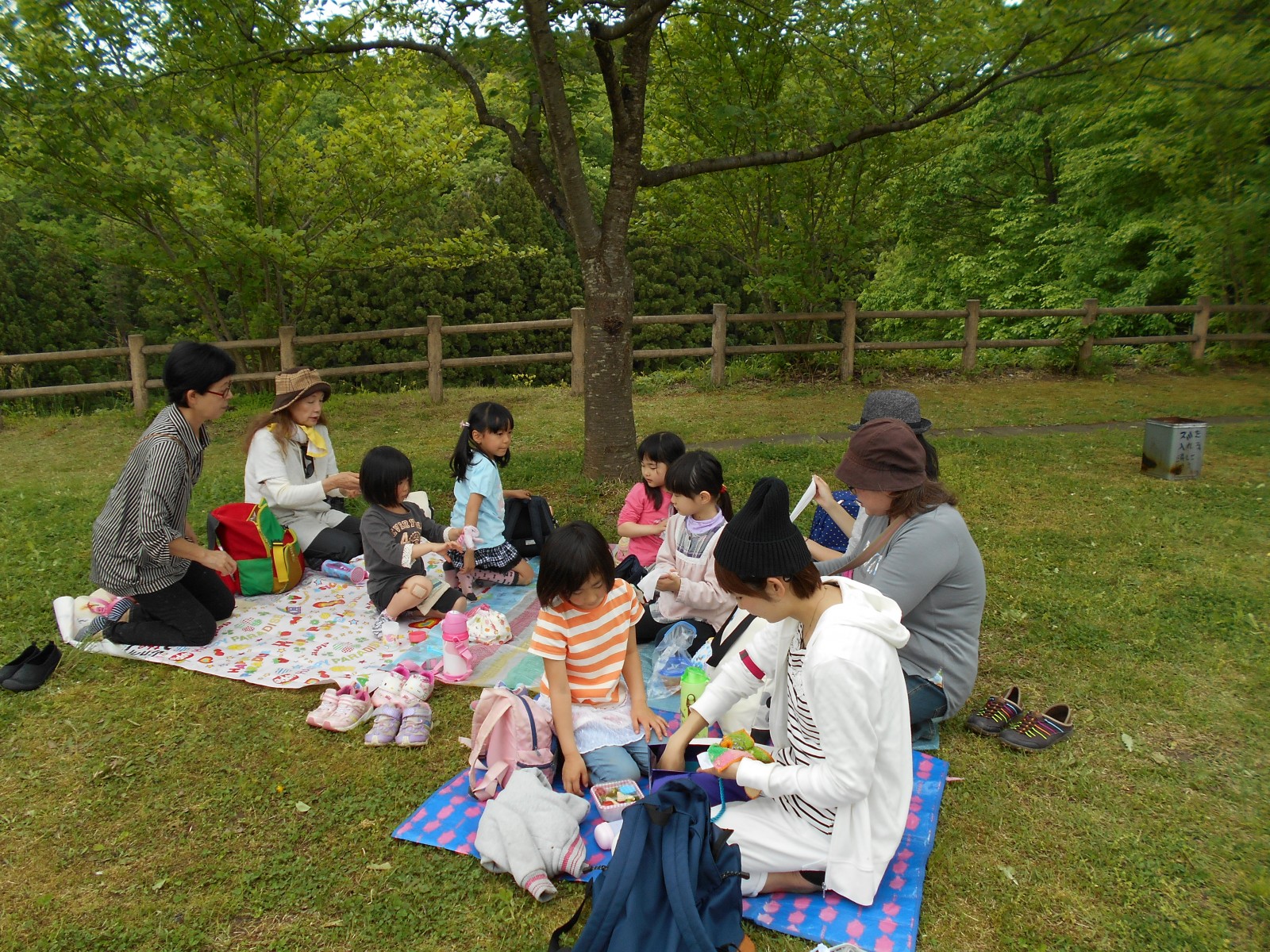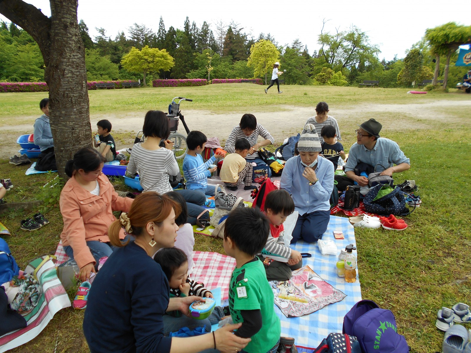 5月10日には年長さんの親子遠足で悠々ランドにいって人工芝のそりすべりや、斜めに建っているビックリハウスでみんなが3半規管の狂いに抵抗しながら、よろよろと歩いているところも写真に撮りました。撮影者はその建物に近づくだけで気持ち悪くなるので別な人にとってもらいました。天気予報では雨だったので、心配しながら行ってきましたが、晴れ女・晴れ男の力で素晴らしい天気で気持ち良かったです。
