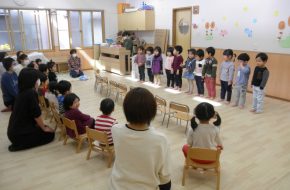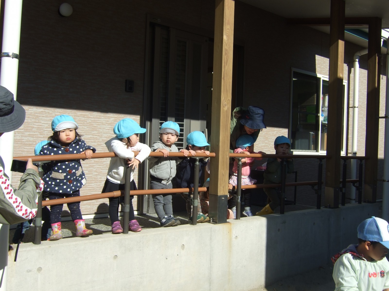 乳児部のお友達もちょっぴりみることが出来また、お部屋の窓からもみることが出来てにこにこ顔でした。