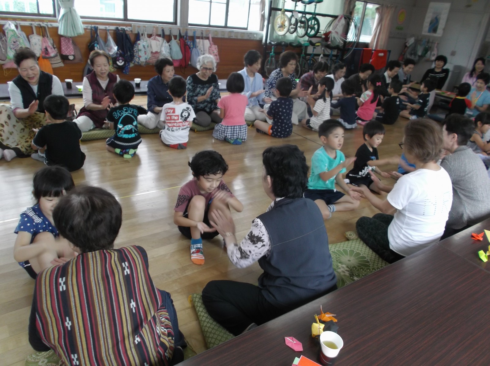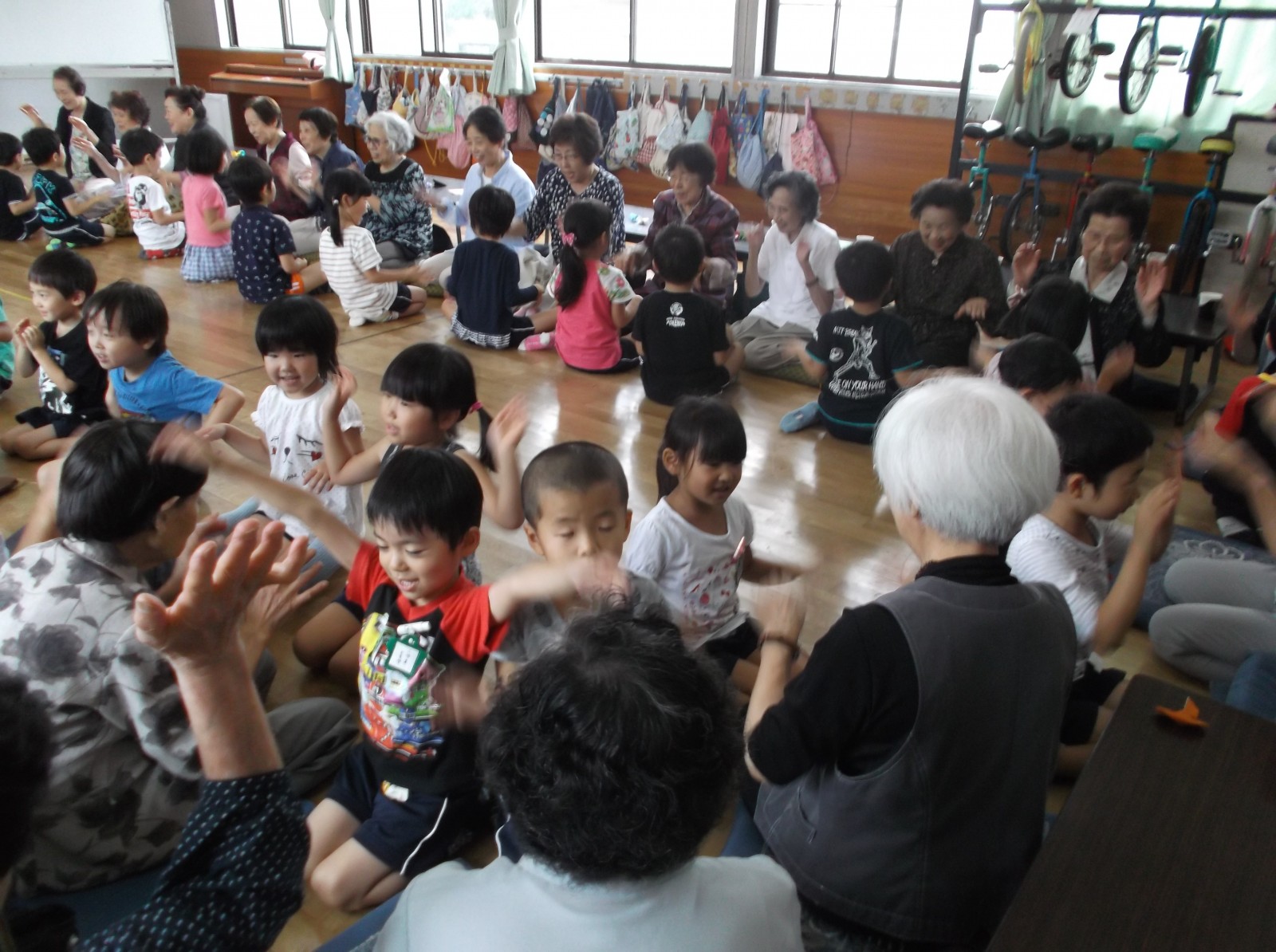 9月26日に町内の敬老会にまねかれ、近くのひまわりクラブの部屋で町内のおいいちゃん達と交流し、遊んだりお話ししたりして楽しいひと時を過ごしました。みなさまいつまでもお元気で!