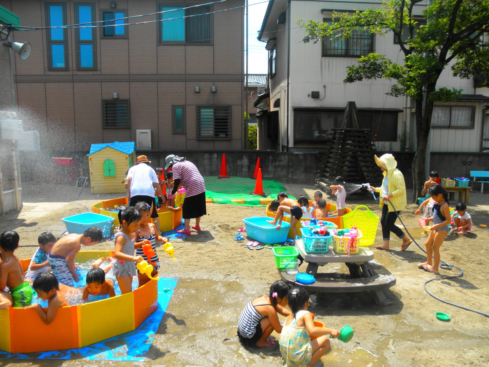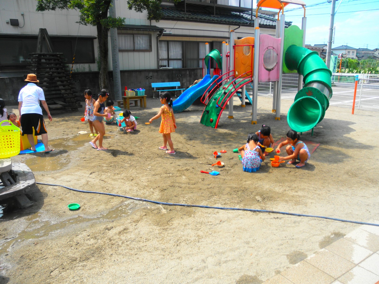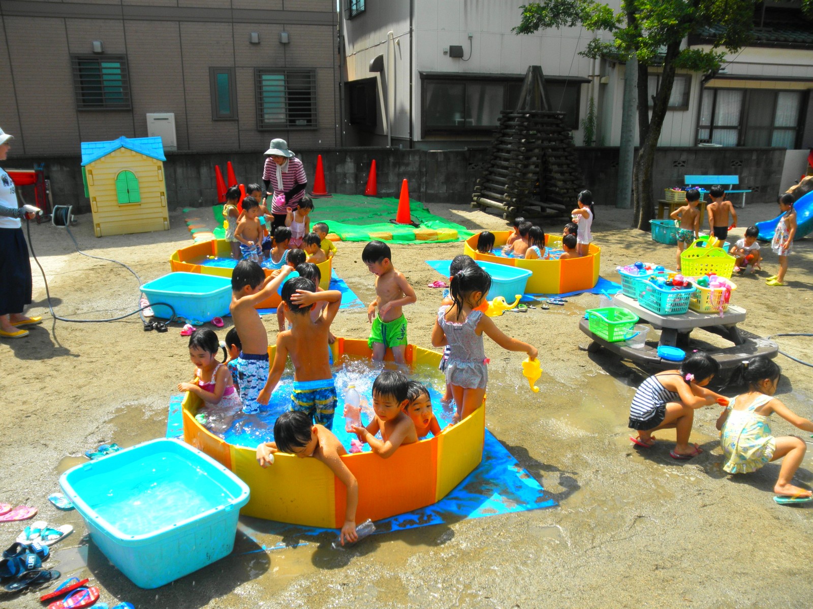 暑い毎日でしたが、乳児部さんつくしさんは園庭でプール遊びをして遊びました。