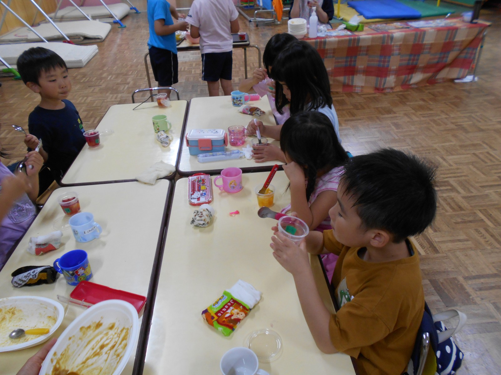 7月最後の土曜日の夕方、暑いひでしたが年長さんが集まりお楽しみ会を開きました。