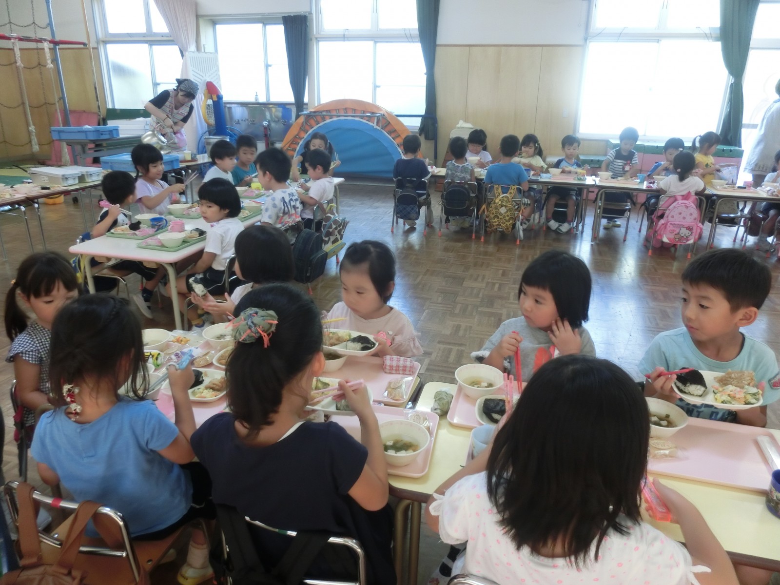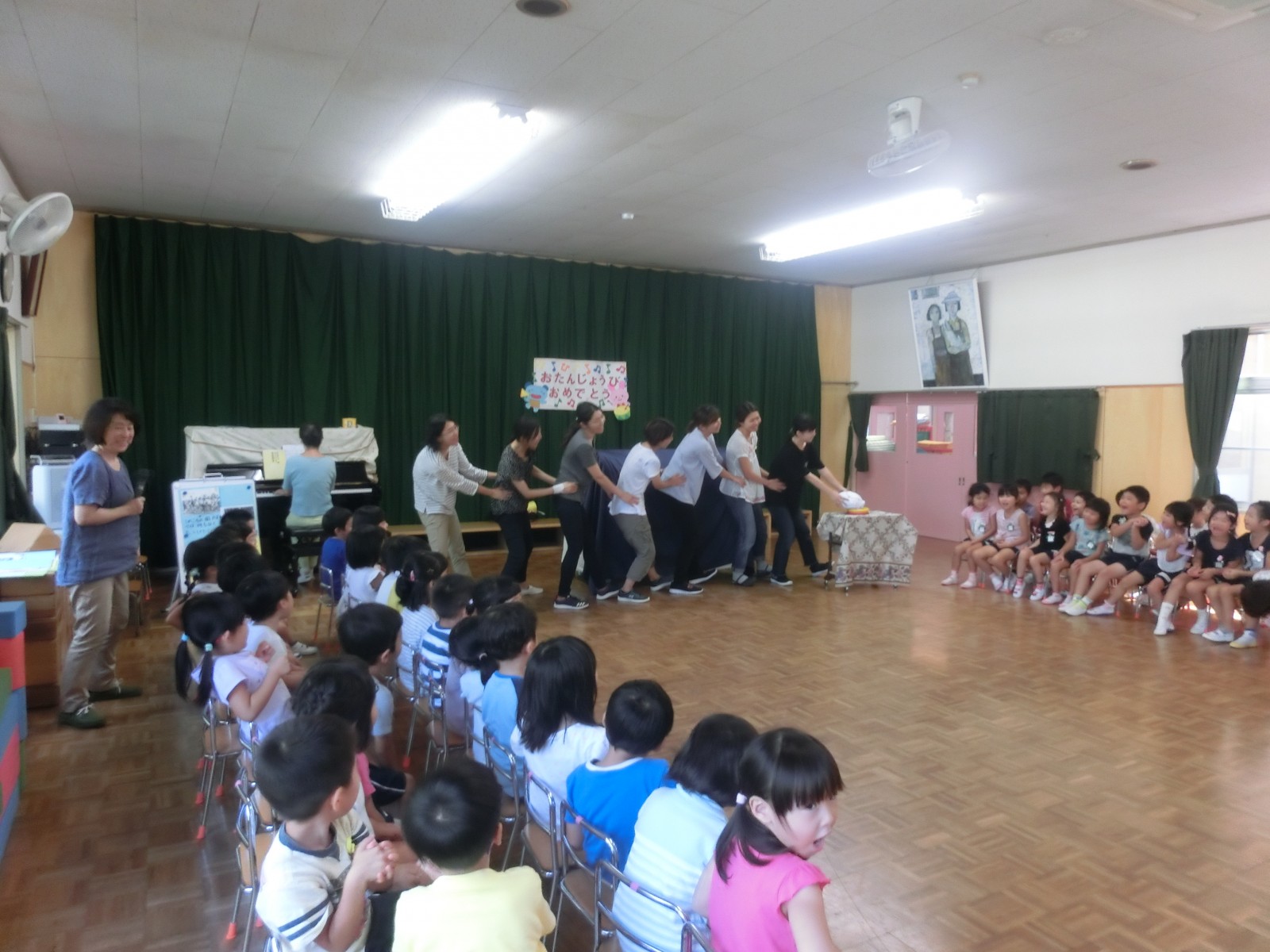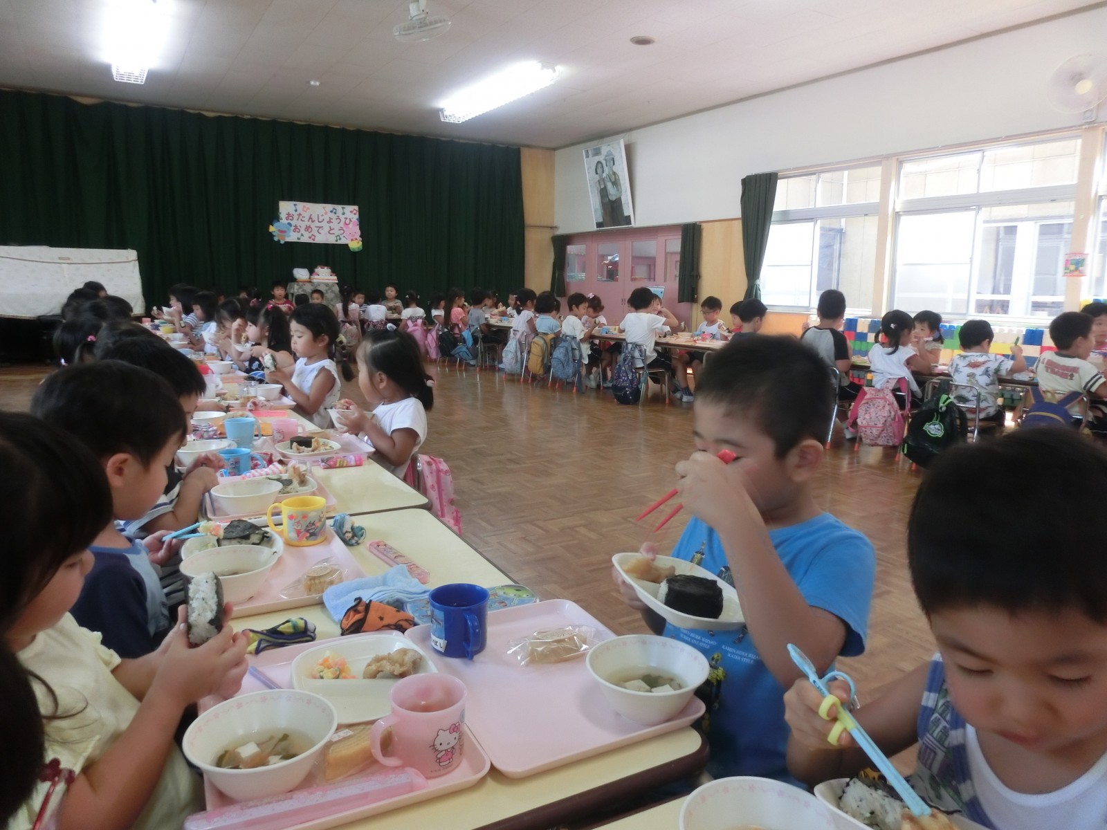9月6日に幼稚園のお誕生会をしました。故澤田園長先生が創られた園舎の写真等みて昔の様子をしのびました。今年は乳児部さんも出席して共に礼拝を捧げました。そして、お兄さんお姉さん達の歌のプレゼントを一緒に楽しみました。