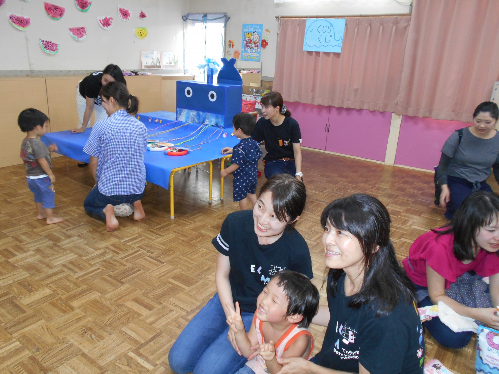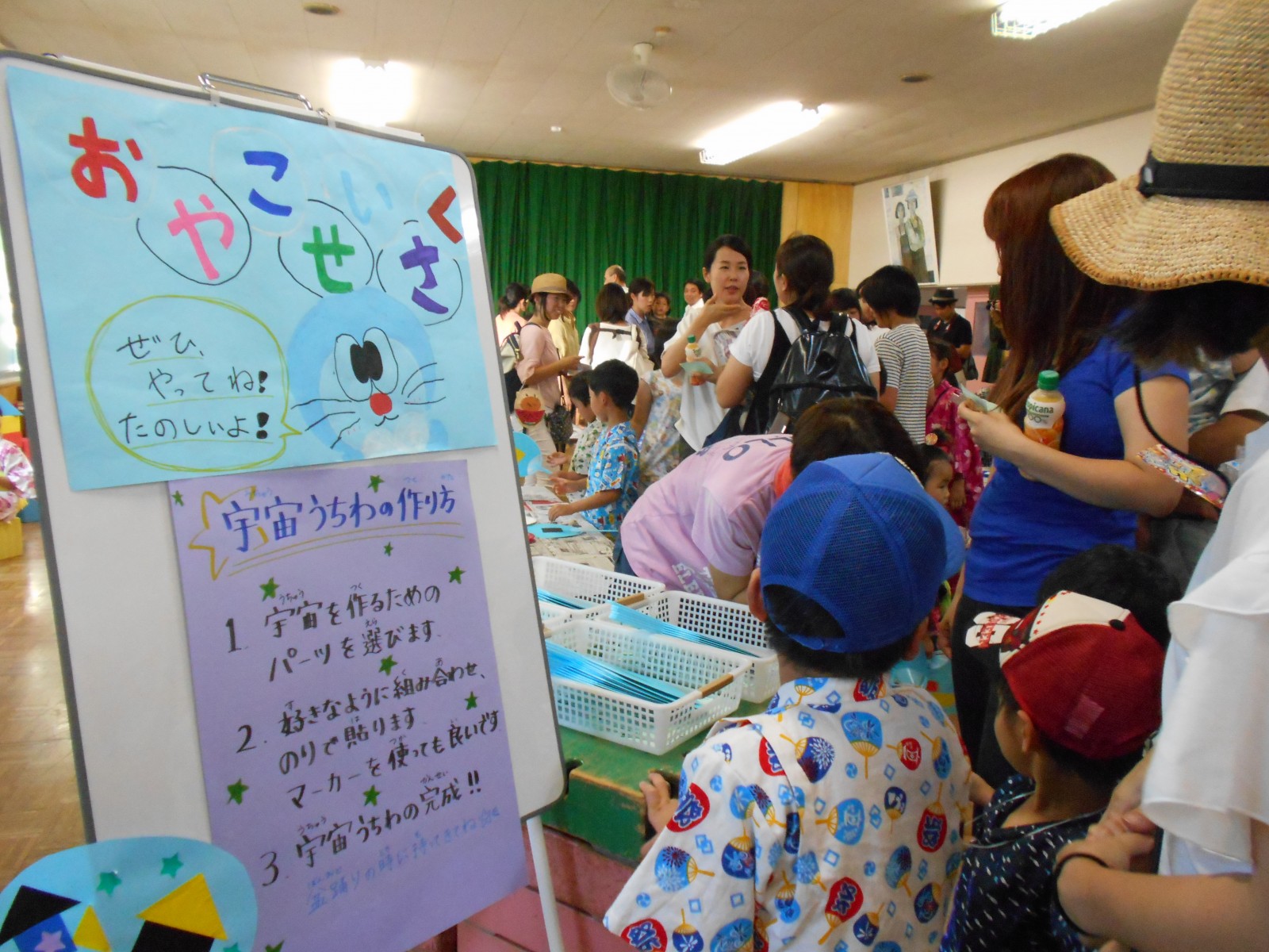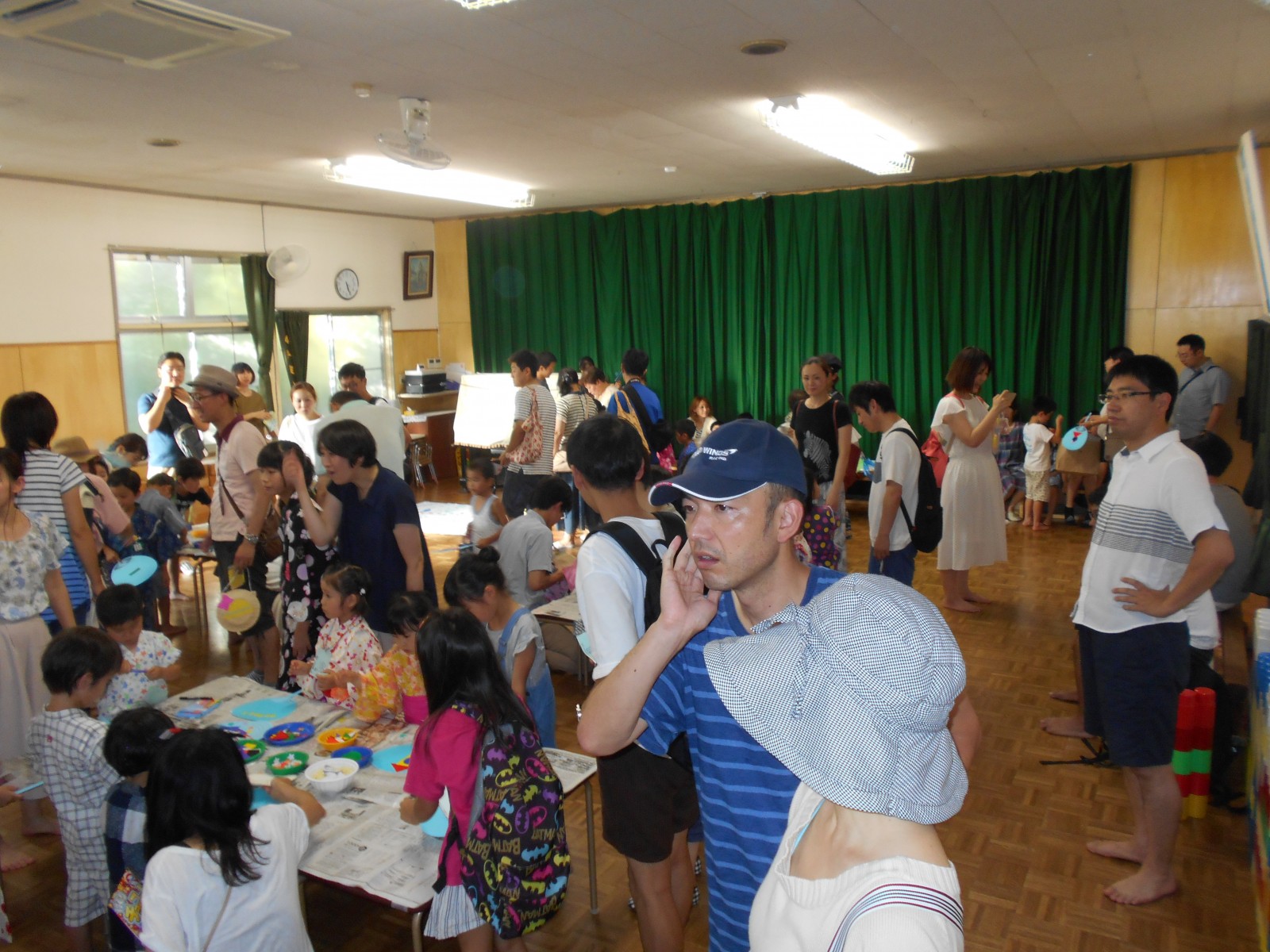 暑い土曜の夜のお祭り!夕方なのに、暑さが延々と続く夕方、夏祭りが開かれました。今年は乳児部さんも合同で行いましたが、浴衣をきたり、甚平さんを着たりと楽しみながら参加出来、よかったね。